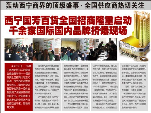 4月15日,一場(chǎng)西寧商界期待已久的盛事在商業(yè)巷舉行——國芳百貨全國招商計(jì)劃正式啟動(dòng)。作為西北百貨零售業(yè)巨頭,國芳百貨進(jìn)駐西寧的消息一經(jīng)傳出,就受到了全國供應(yīng)商的密切關(guān)注。僅招商首日,趕來參加的全國各大供應(yīng)商已逾千家,現(xiàn)場(chǎng)異常火爆。